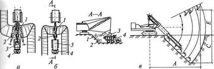Рис. 5.16. Схемы разработки фунта экскаватором, оборудованным ковшом