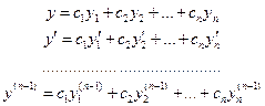 (1) является решением уравнения L[y] = 0, т.к. это линейная комбинация решений y1,..., yn. Покажем, что это общее решение.