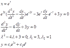 Подставляя (4) в уравнение (1), получаем однородное линейное уравнение n-го порядка с постоянными коэффициентами. Найдя общее решение и полагая в нём