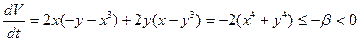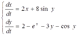 Нелинейные члены удовлетворяют условиям теорем 3. и 4. Исследуем на устойчивость точку покоя