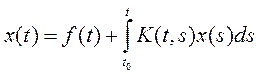 К интегральным уравнениям типа Вольтера приводит задача Коши для обыкновенного дифференциального уравнения.