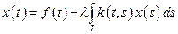 Теорема о существовании и единственности решения линейного интегрального уравнения Фредгольма 2-го рода с параметром.