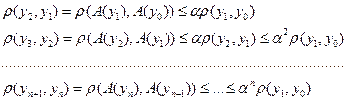 (6) и уравнение (1) будет иметь вид х = Ах (7). Если мы докажем, что А – оператор сжатых отображений, то тем самым будет доказано, что уравнение (1) имеет единственное решение.