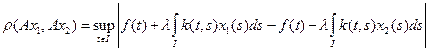 Рассмотрим функциональное пространство непрерывных функций, заданных на промежутке I. Под расстоянием на этом пространстве между двумя любыми элементами этого пространства будем понимать