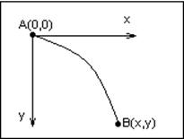Поместим начало координат в точку А, а ось направим горизонтально, ось 0у – вертикально вниз. Скорость движения материальной точки