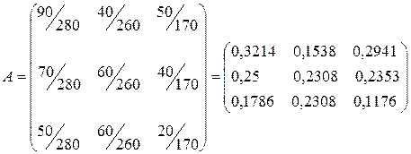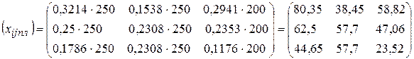 Пример. Для условной экономики, состоящей из трех отраслей, за отчетный период известна схема МОБ: