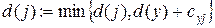 , ведущей из y в рассматриваемую вершину. Временной пометке рассматриваемого узла присваиваем минимальное значение из двух сравниваемых величин: