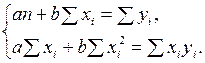 найдем из решения системы двух нормальных уравнений: