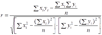 В случае прямолинейной формы связи теснота может быть измерена линейным коэффициентом корреляции по формуле: