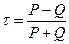 все единицы ранжируются по признаку x, по ряду другого признака y подсчитывается для каждого ранга число последующих рангов, превышающих данный (их сумму обозначим P) и число последующих рангов, ниже данного (их сумму обозначим Q).