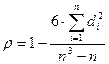 - разность между рангами переменной x и y.