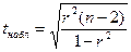 n- 2 – число степеней свободы, а n – количество наблюдений;