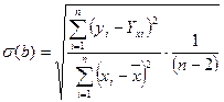 - среднеквадратическая (стандартная) ошибка параметра регрессии b, находится по формуле