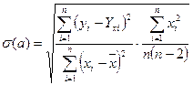 - среднеквадратическая (стандартная) ошибка параметра регрессии a, находится по формуле