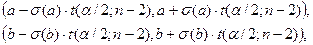 Доверительные интервалы параметров регрессии при уровне значимости