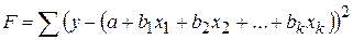 найдем методом наименьших квадратов (МНК). Для этого необходимо минимизировать сумму квадратов отклонений результативного признака