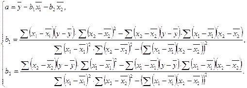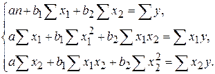 Рассмотрим множественное уравнение регрессии с двумя признаками-факторами: