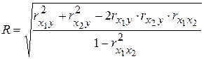 Совокупный коэффициент корреляции вычисляется по формуле:
