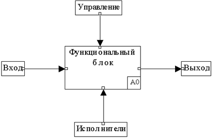 Механизм (человек или автоматизированная система), который осуществляет функцию, представляется дугой, входящей в блок снизу (см.рис.).
