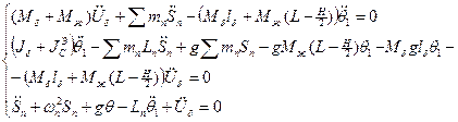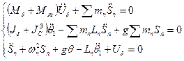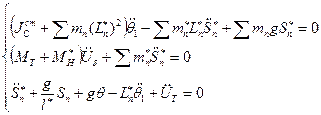 Дифференциальные уравнения плоского движения бака с жидкостью и стержня с маятником.