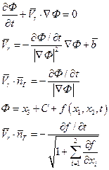 Уравнения колебаний свободной поверхности жидкости в обобщенных координатах для случая произвольно перемещающегося подвижного сосуда.