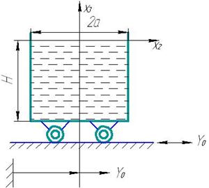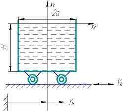 Рассмотрим (составим) уравнение поступательного движения бака с жидкостью с предположением механической модели.
