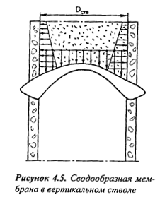 Но для реализации положительного действия мембраны необходимы активная ее пригрузка и распор крепи в окрестности заделки мембраны. Пригрузку можно создать засыпкой мембраны на высоту 20-30 м.