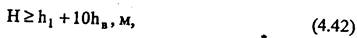 В ликвидируемых стволах, пройденных под территорией без постоянного нахождения людей (вне застройки), предельная глубина расположения перемычки, определенная по формуле (4.41), уменьшается на 20%.