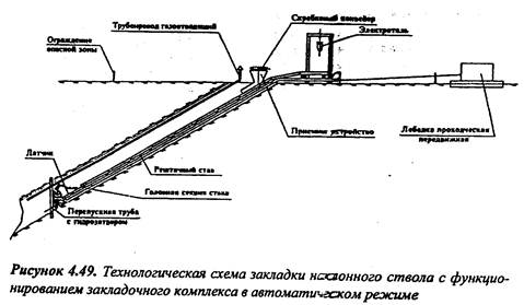 После сооружения опорной перемычки монтируется оборудование и механизмы для ведения закладочных работ и осуществляется закладка ствола (рис. 4.46).