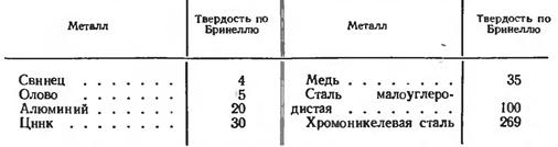 В табл. 3 для примера приведена твердость некоторых металлов по Бринеллю.