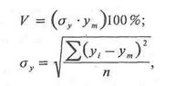 Решение о необходимости проведения последующих туров экспертизы и достоверности групповой оценки принимается, как правило, исходя из показателя согласованности мнений экспертов. В качестве такого показателя используется коэффициент вариации V, рассчитываемый по формуле: