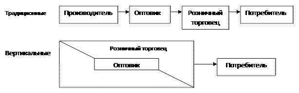 — на обычные, состоящие из одного или более независимых производителей, оптовых и розничных торговцев, каждый из которых в своей деятельности максимизирует собственную прибыль, без учета получения максимальной прибыли для канала в целом. Внутри подобных каналов может отсутствовать согласие относительно целей и содержания деятельности их участников, что приводит к конфликтам: горизонтальным — между лицами и организациями одного уровня канала, например между дилерами, обслуживающими одного производителя; вертикальным — между различными уровнями канала, например между производителями и дилерами;