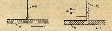 Резцовый метод регистрации - (рис..3) вкачестве регистрирующего органа РО применяется тонкая игла из твердого материала. Носитель — темная, гладкая, плотная бумажная лента покрытая тонким светлым слоем воска или парафина. В не которых случаях вместо воска или парафина на бумажную ленту напыляют тонкий слой металла, например алюминия толщиной 5—15 мкм. При перемещении регистрирующей: органа по носителю покрытие счищается и на носителе остается четко видимый темный след в виде сплошной линии Ширина следа может быть очень малой и в некоторых случаях составляет 50—100 мкм.