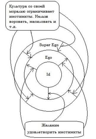 В психике личности три момента выделяет: оно, эго, суперэго. Id, Ego, Super-Ego.