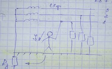 ¾ Схема включения человека в цепь