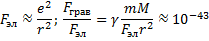 me= 9.11 *10-28грамма. Силы, действующие между электронами и ядром, имеют электромагнитную природу, в рамках данного курса достаточно рассмотреть только электростатические силы. Гравитационные силы (протон-электрон) по сравнению с электростатическими силами (протон-электрон) пренебрежимо малы: