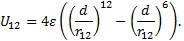 Молекула – это соединение из одного или нескольких атомов. Природа химического соединения атомов в молекулу будет изучаться позднее – в курсе квантовой механики. Сейчас нас интересует характерный вид потенциала межмолекулярного взаимодействия. Рассмотрим типичный пример – молекулу водорода H2. В этой молекуле 2 атома, в качестве примера межмолекулярного потенциала рассматривается потенциал Леннарда-Джонса, зависящий от расстояния между двумя частицами: