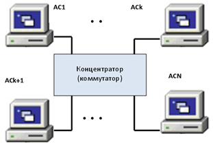 Рис. 2. Сеть Ethernet / IEEE 802.3 с топологией «звезда»