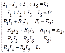 узла. Следовательно, необходимо иметь систему из шести уравнений. При этом по первому закону Кирхгофа требуется составить