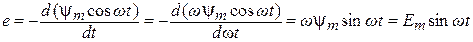 Когда плоскость катушки перпендикулярна магнитным силовым линиям, магнитный поток, пронизывающий катушку, будет иметь максимальное (амплитудное) значение Ф m. Если угловая скорость вращения катушки равна ω, то, через определенный промежуток временикатушка окажется повернутой на угол
