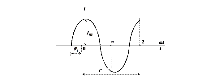 Общий вид временной диаграммы рассмотрим на примере периодически изменяющейся во времени функции тока, мгновенное значение которой определено выражением: