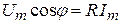 В результате сложения векторов получается прямоугольный треугольник напряжений с гипотенузой, равной полному напряжению U,катетом, равным активному напряжению
