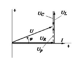 ,напряжение которого называется реактивным. На построенной диаграмме преобладает индуктивное напряжение и поэтому реактивное напряжение совпадает по фазе с индуктивным.