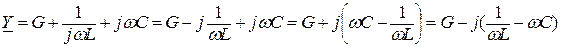 В случае параллельного соединения элементов G, L, C комплексная проводимость запишется в виде: