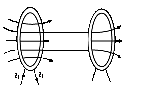 | Пусть имеем цепь с двумя катушками индуктивности, по одной из которых протекает ток. Этот ток создает в данной катушке магнитный поток, который в свою очередь пересекает площадь витков второй катушки. |