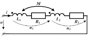 При последовательном соединении катушек ток в них один и тот же, а приложенное напряжение должно преодолеть все ЭДС и сопротивления цепи.