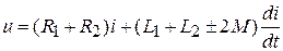 При встречном включении катушек магнитные потоки самоиндукции и взаимоиндукции направлены в противоположные стороны и ЭДС взаимоиндукции имеет знак, обратный знаку ЭДС самоиндукции. Тогда приложенное напряжение: