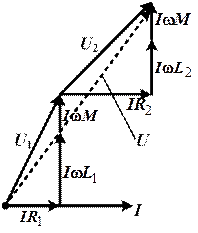 В этих уравнениях комплексные напряжения вводятся со знаком плюс, так как одинаково ориентированы относительно одноименных зажимов (согласное включение обмоток).