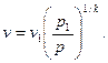 Так как поток принят адиабатным и заданы параметры сечения 1, то из pv k = const получим