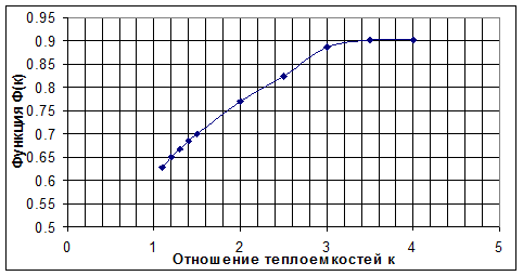 Ниже приводится график зависимости функции Ф(k) от показателя адиабаты k.